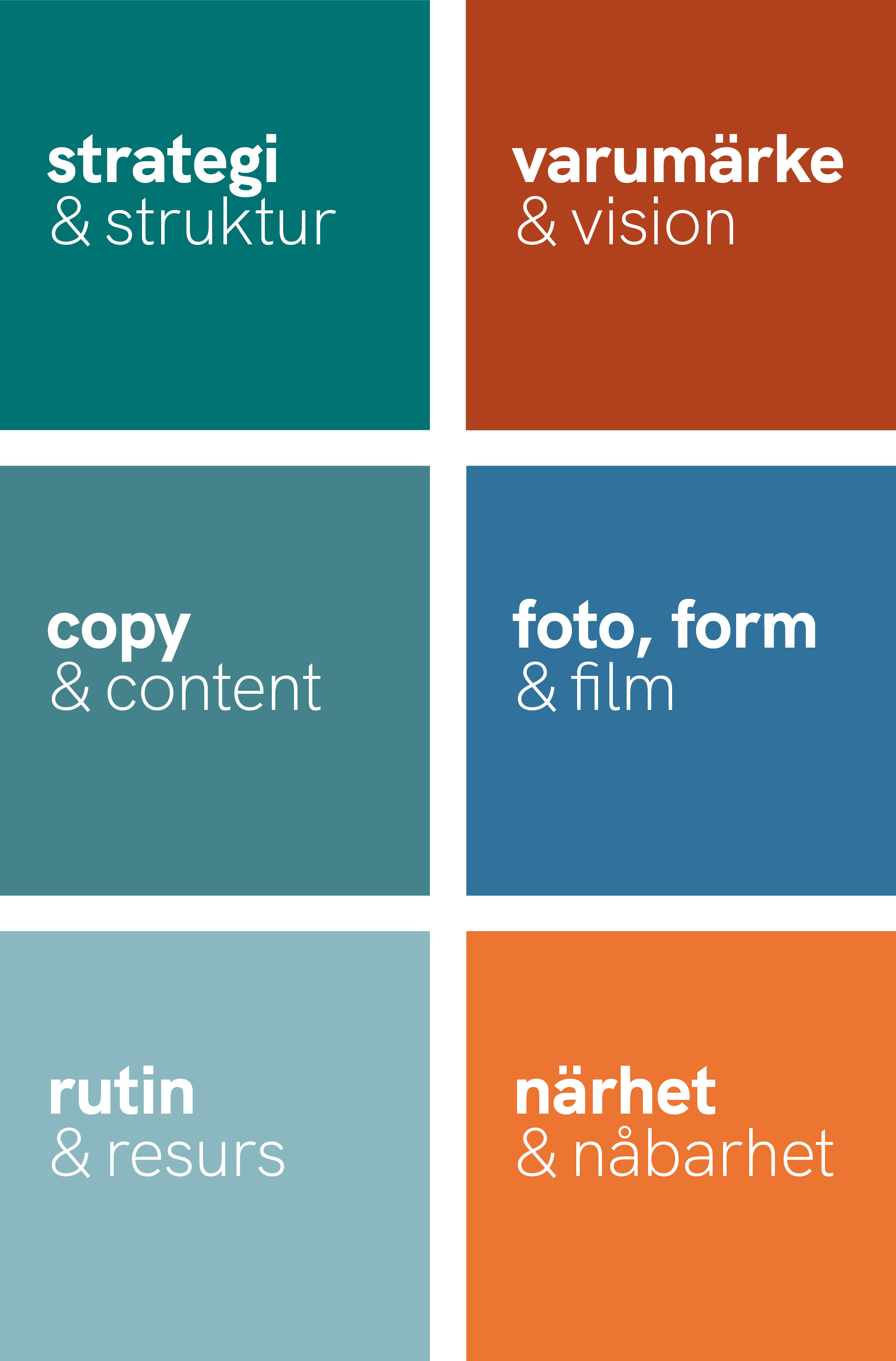 Vi har erfarenhet av både inhousevärlden och byråvärlden. Vi bejakar inhouseprincipen men vet att det i realiteten är svårt att få personal som har både det strategiska tänket, den kreativa höjden, den hantverksmässiga kunskapen och kapaciteten att hålla i allt detta samtidigt. I olika faser av kommunikationsarbetet behövs ett tillskott och frågan är var man hittar det stödet.